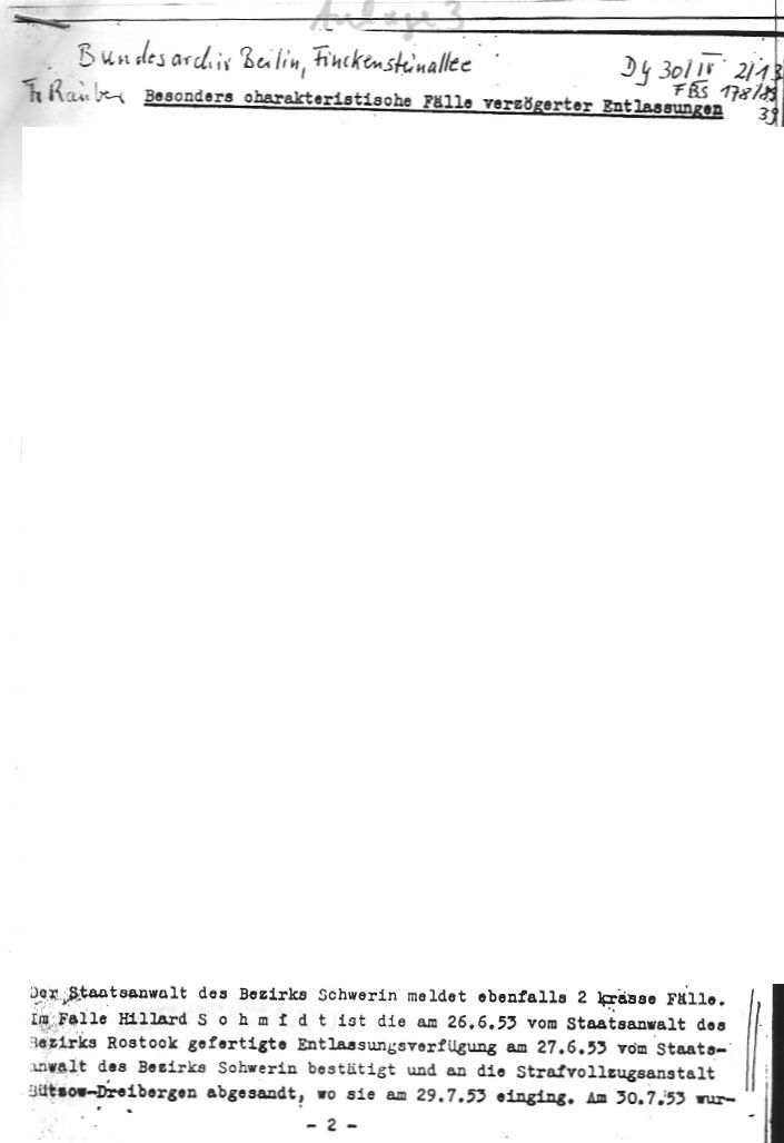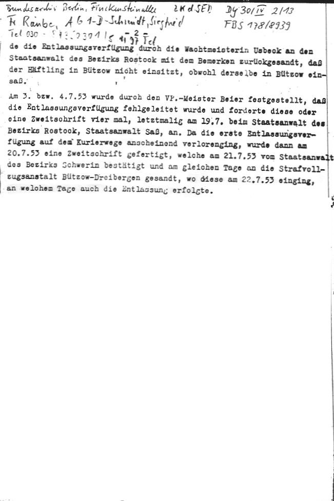 Haftentlassung erfolgte am 22.7.1953! Zu diesem Zeitpunkt